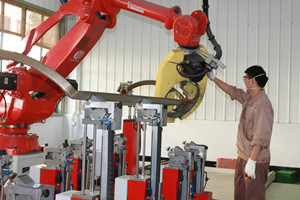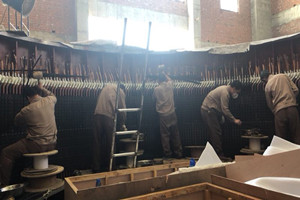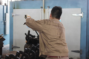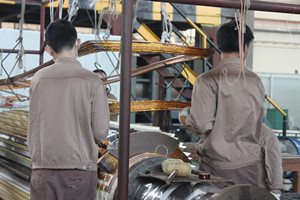當我們走進線圈車間,撲面而來的是一股熱流,墻上掛著的溫度計已爬到了45度,而在那熱流沖擊的背后是一張張汗如雨下的面孔。在“焊”、“烘”、“熱壓”這一道道工序上,員工們頂著足以“蒸桑拿”的溫度,將熟練的動作與他們如同水洗一般的工作服交織在一起,但這些始終不影響線圈車間員工工作的熱情。汽發25MW、30MW、35MW機型的轉子線圈、定子線圈、槽套正在緊張的生產中,天氣炎熱,“燜”出汗了,用手擦把汗,渴了喝口水繼續工作,大家都在為了完成生產任務一直前進。車間的員工有家里小孩無人照看的,家里老人生病住院的,但為了能及時完成生產工作,他們經常放棄休息時間,放棄了多個與家人團聚的機會,在關鍵時刻,他們那強烈的責任感迸發出了強大的力量。