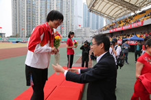 在現場近四千余名觀眾的掌聲和歡呼中,集團黨委書記、董事長鄭斌宣布杭汽輪集團第六屆職工運動會正式開幕。隨后,運動會的田徑賽拉開了帷幕,各項目也逐漸展開了角逐。田徑賽場上,我公司的運動健兒們激情迸發,展示了團結拼搏、健康快樂的體育精神。賽場外,公司各部門組織有序,啦啦隊助威壯聲勢,運動場上吶喊助威聲響徹云霄。特別是4*100米接力賽,我公司運動員孔一航、韓佳、戚佳偉、方榮華從起跑到沖刺,他們都使出了身體每個角落里的力量,甩開鷹似的雙臂,邁開閃電似的雙腿,在賽場上飛揚。此時此刻,公司幾百雙眼睛都在注視著他們那矯健的身影,他們的每一次沖刺、每一次傳棒和接棒都吸引著公司員工的視線、都扣動著員工們的心弦。當第四棒方榮華以小組第三的成績即將跑到終點時,公司員工們不由自主的從看臺上站了起來,瘋狂地為他們吶喊、為他們自豪。全場氣氛達到了高潮,4*100米項目也成了今日運動場上的一大賽點。這一天,運動健兒們的心中只有追逐;這一天,只有終點才能讓他們沉迷;這一天,沒有什么可以阻擋住他們前行的步伐。這一天,杭發公司的運動健兒們在金秋十月的運動場上摘到了屬于他們的勝利果實,公司29名運動員取得了可喜的成績。楊慧獲女子甲組跳遠第一名,并打破了十年前由她本人創立的集團運動會紀錄。李益松獲男子甲組鉛球第一名,韓佳獲男子甲組400米第七名,方榮華獲男子跳遠第五名,譚力、孔一航、周航分別獲男子800米第五名、第六名、第八名,王東獲男子鉛球第八名,團體項目跳大繩獲第五名,男子4*100米獲第六名。