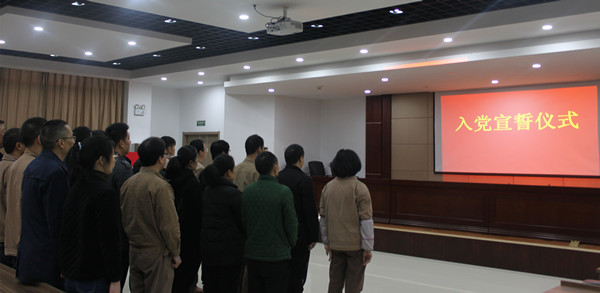 會上,一面鮮艷的黨旗由四名護旗手護衛(wèi)到臺前,組織處處長齊玉鳳宣讀了黨員名單,新黨員列隊整齊地站前黨旗前。首先,各黨支部書記親自為參加儀式的黨員們佩戴上象征著榮譽和責任的黨徽。隨后,與會全體黨員在組織員王呂豪的帶領(lǐng)下,舉起右拳,面對鮮艷的黨旗,發(fā)出了為共產(chǎn)主義奮斗終身的決心和誓言。整個過程莊嚴肅穆,儀式讓與會全體黨員同志們接受了一次黨性教育的洗禮,同時也推動了“兩學一做”學習教育從初心抓起,從入黨做起。