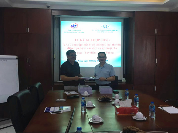 日前,公司總經理、黨委書記孟中惠帶隊赴越南與越方業主簽訂了越南向峰電站正式供貨合同。越南向峰電站水頭 316米,水輪機型號:CJA475-L-140/4X13,發電機型號:SF-J9400-12/2840,立軸式四噴嘴沖擊式機組,電站裝機容量為18.8MW。越南向峰電站是繼越南德成電站后我公司又一個在越南機電總承包項目。該項目合同額近2000萬人民幣,電站建設周期為24個月。