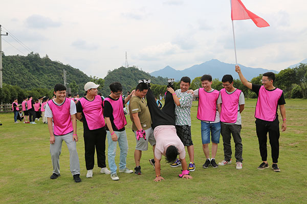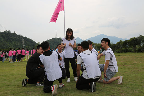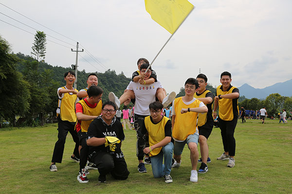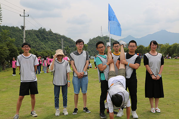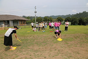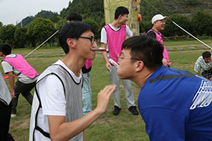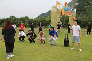 到達臨安風之谷后,所有人通過教練說、桃花朵朵開等幾個小互動后,很快進入了狀態,把氣氛推向了高潮。領隊把所有人分成了5個小隊,經過一陣激烈的討論之后,各隊八仙過海、各顯神通,互飆各自的想象能力。5個小隊的隊名也各具特色,分別是青青草原隊、一幟隊、真美團隊、飛天茅臺隊、禿雞隊。每隊齊聲高喊口號,各隊的pose也擺得別具一格,引來周圍一陣哄堂大笑。
