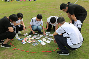 在這歡快氛圍下,接下來等待大家的是競爭激烈的游戲環節,第一個拓展游戲是急速六十秒。這是一項考驗小組成員團結與協作意識的拓展項目,地上放置30張分別代表數字信息的卡片,但卡片沒有標明數字,而是匯集了抽象、諧音、算術、生活常識等多方面形象圖案,需要同學們發揮聯想來識別所代表的數字。在準備階段,大家基本摸不著頭腦,將卡片拿在手里反復研究,你一言我一語,慢慢便摸透了每張卡片背后隱藏的數字。在準備工作就緒的情況下,隨即哨聲響起,各小組分工明確,有人負責記卡,有人負責“刷卡”。隨著團員們思維的漸漸發散,越來越多的圖片相繼“顯出了原形”,發散性極強的圖片讓大家不禁感嘆到“這必須得腦洞大開啊!”在激烈的角逐之后,5組成員進行了極速六十秒、撿石頭過河、面面相覷等多個團隊游戲,最后由真美團隊、青青草原隊、一幟隊分別獲得前三名,真美團隊在獲得了冠軍之后還得到超級大禮包。緊張的競賽雖然結束,但是大家熱情絲毫沒有褪去,乘坐mini小火車,開啟美食之旅,彼此分享美食,彼此相互熟悉。